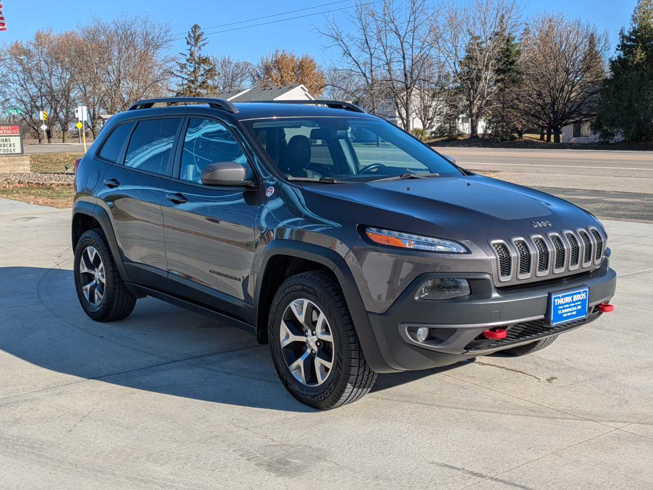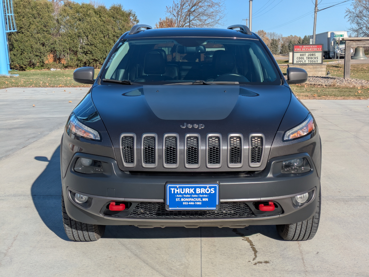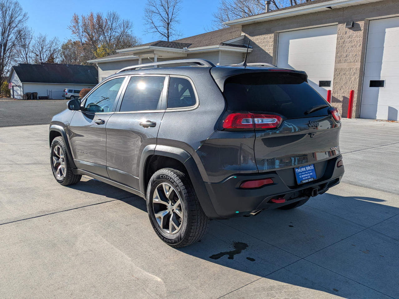 Nice 4wd Cherokee Trailhawk. Loaded with heated, leather trimmed seating, U Connect radio with bluetooth and backup camera, climate control, power liftgate, adjustable 4wd modes, 3.2 V6 engine, panoramic sunroof, and 2" reciever hitch and wiring. Freshly detailed and serviced/inspected in our shop. New oil and filter and air filter, very good tires. Ready to go to a new home.