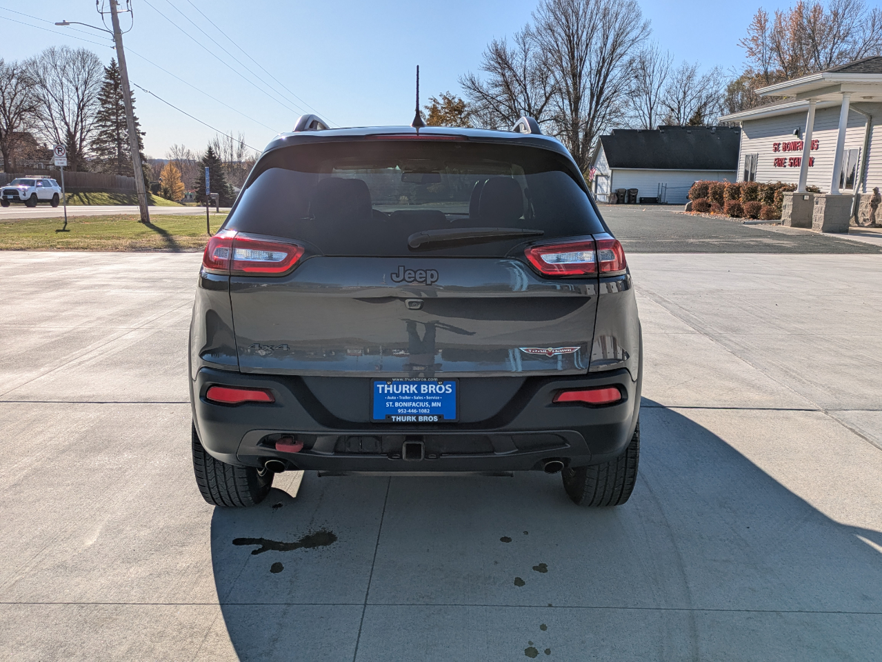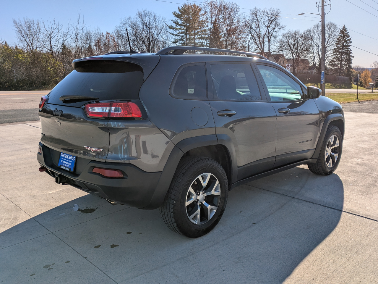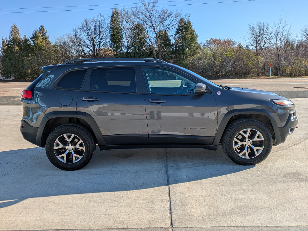 Nice 4wd Cherokee Trailhawk. Loaded with heated, leather trimmed seating, U Connect radio with bluetooth and backup camera, climate control, power liftgate, adjustable 4wd modes, 3.2 V6 engine, panoramic sunroof, and 2" reciever hitch and wiring. Freshly detailed and serviced/inspected in our shop. New oil and filter and air filter, very good tires. Ready to go to a new home.